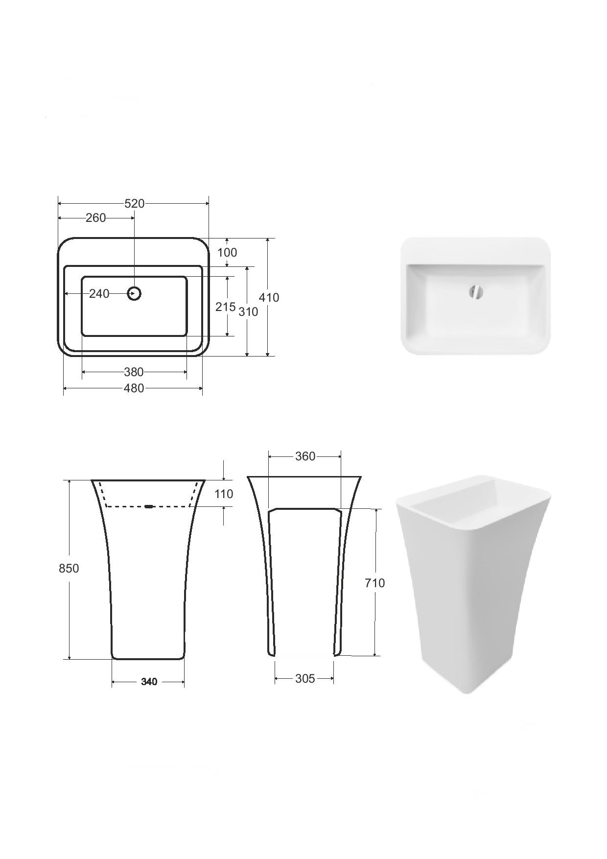 30 090,00 CZKumyvadlo volně stojící ASSOS S-LINE, litý mramor, 520x410x850 mm, GLAM02 stříbrn barva/bílá barva