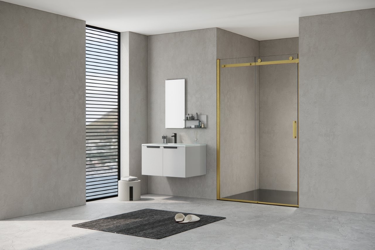 Dveře lze kombinovat s pevnou stěnou PANEL BELVER GOLD a vytvořit tak praktický obdélníkový sprchový kout.