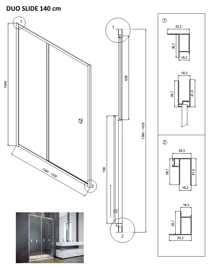 Rozměry a parametry sprchového koutu DUO SLIDE: