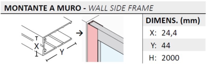 Při použití s pevnou stěnou je třeba k montážním rozměrům přičíst 2 cm k menší hodnotě.