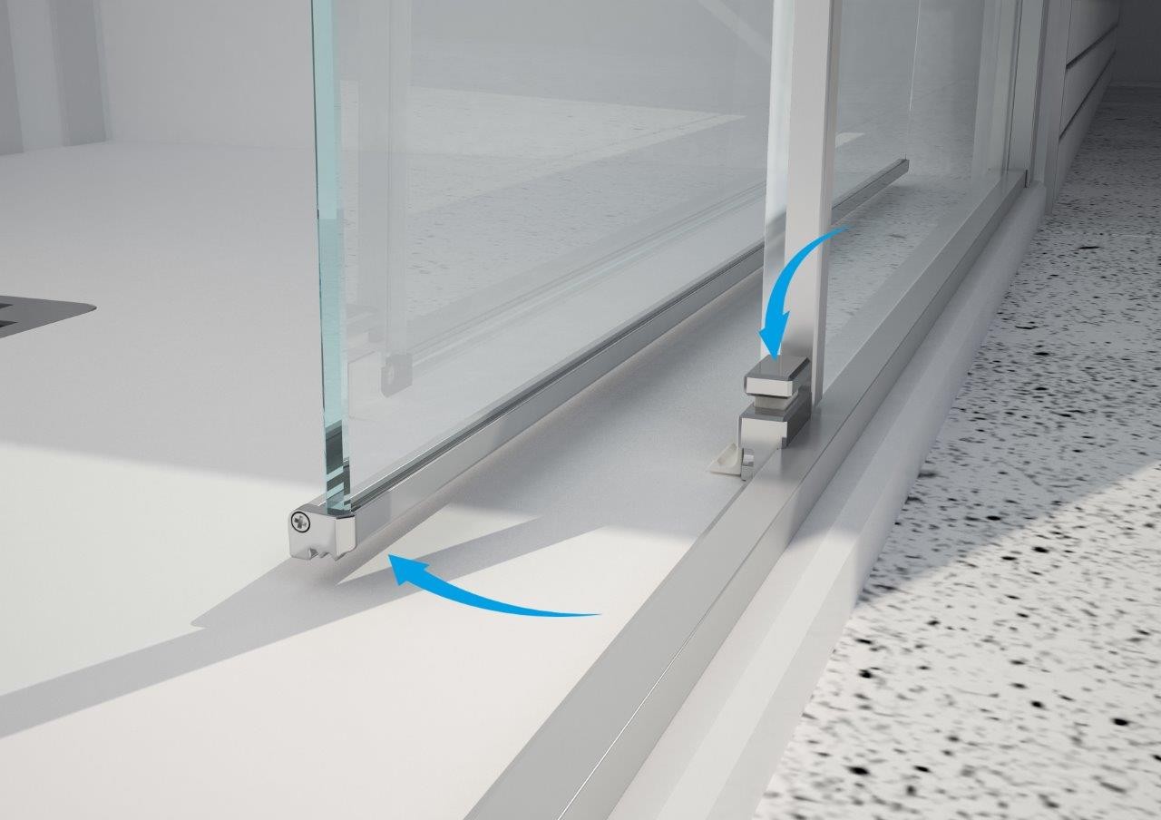 Posuvné skleněné stěny řeší atypické vstupy v prostorných koupelnách. Vytváří velmi luxusní dojem, který je podpořen výrazným madlem. Dveře se dodávají v levém nebo pravém provedení. Bezpečnostní sklo je opatřeno povrchovou úpravou AQUA CLEAN pro jednodušší údržbu.