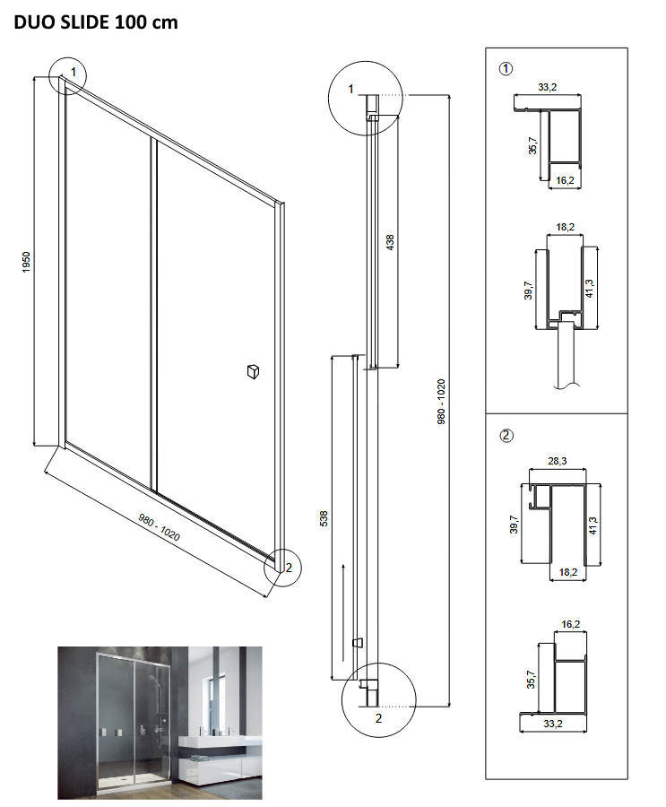 Rozměry a parametry sprchového koutu DUO SLIDE: