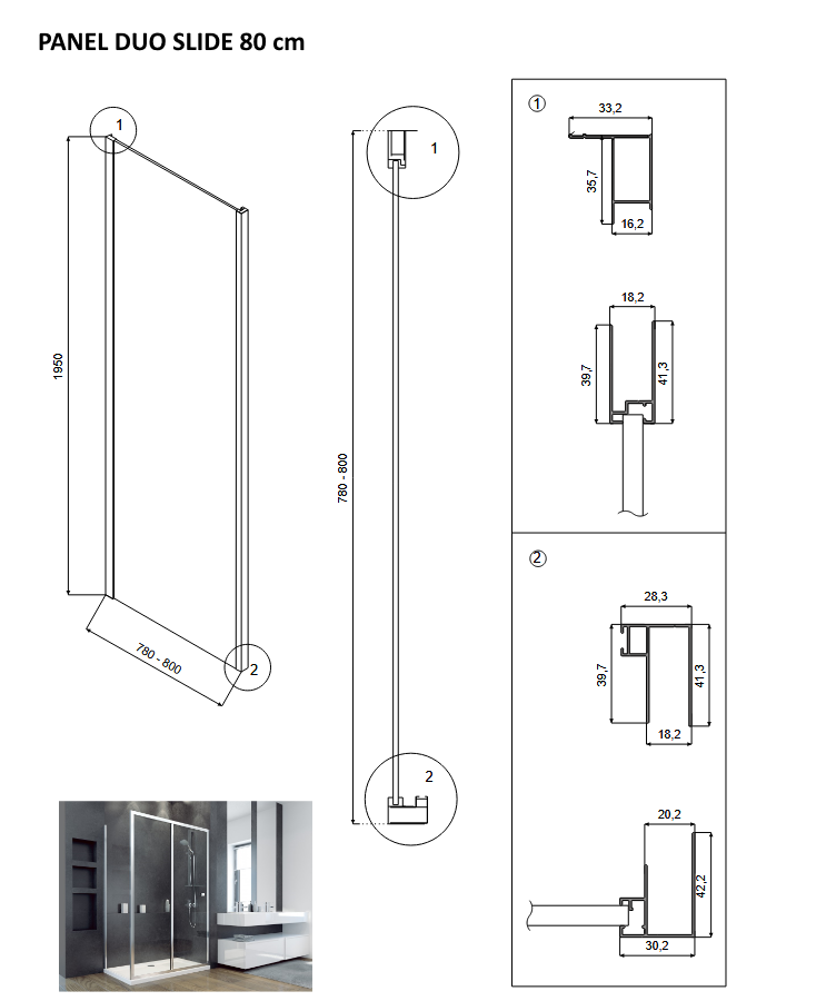 Neslouží jako samostatný sprchový kout nebo zástěna, je určena pouze pro kombinaci se sprchovými dveřmi DUO SLIDE BLACK. Kombinací bočního panelu a sprchových dveří vytvoříte sprchový kout.