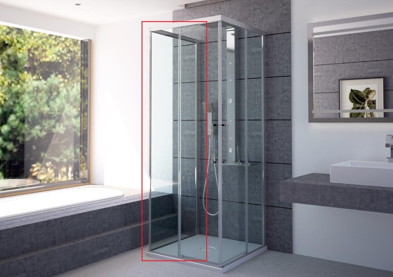 Samostatná pevná stěna ESSENCE F1AB společnosti HOPA. Není určena jako samostatně stojící zástěna, slouží ke kombinaci se sprchovými dveřmi série ESSENCE N1FS, N2FS a A1FS. Kombinací stěny a sprchových dveří vytvoříte sprchový kout.