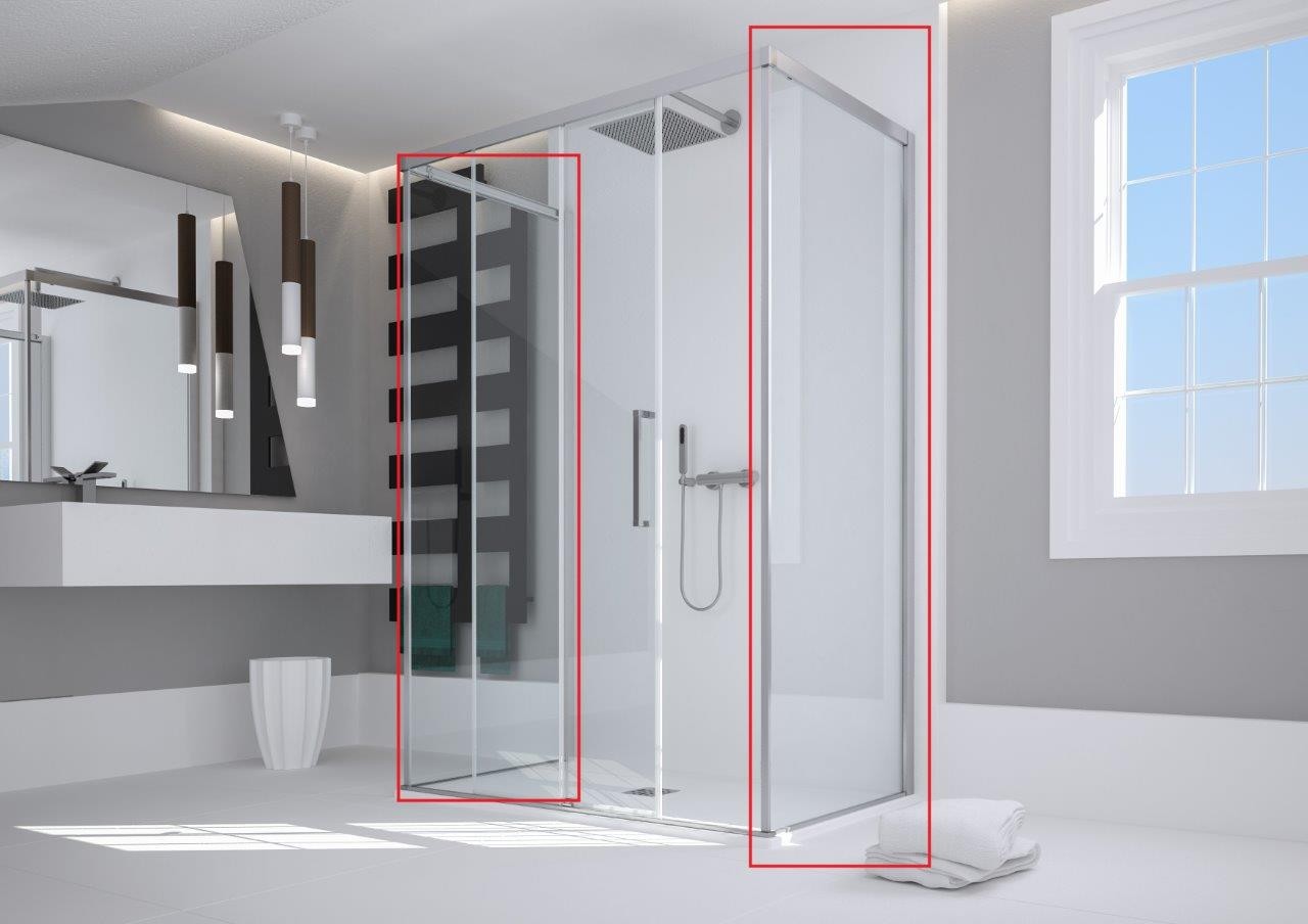 Samostatná pevná stěna ESSENCE F1AB společnosti HOPA. Není určena jako samostatně stojící zástěna, slouží ke kombinaci se sprchovými dveřmi série ESSENCE N1FS, N2FS a A1FS. Kombinací stěny a sprchových dveří vytvoříte sprchový kout.