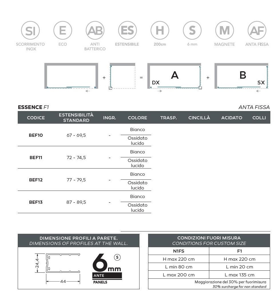 10 389,00 CZKESSENCE F1AB (pevná stěna), 77-79,5x200 cm, (ossidato, čiré)
