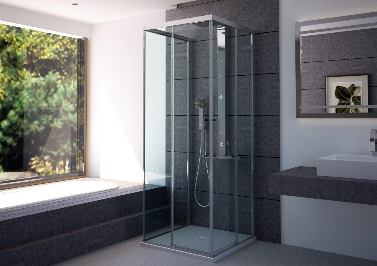 Sprchový kout, tvořený z pevné stěny ESSENCE F1 a sprchových dveří je možné instalovat na sprchové vaničky nebo velmi elegantní přímo na podlahu. Při montáži přímo na podlahu jsou velmi efektivním řešením pro odvod vody podlahové odtokové žlaby.