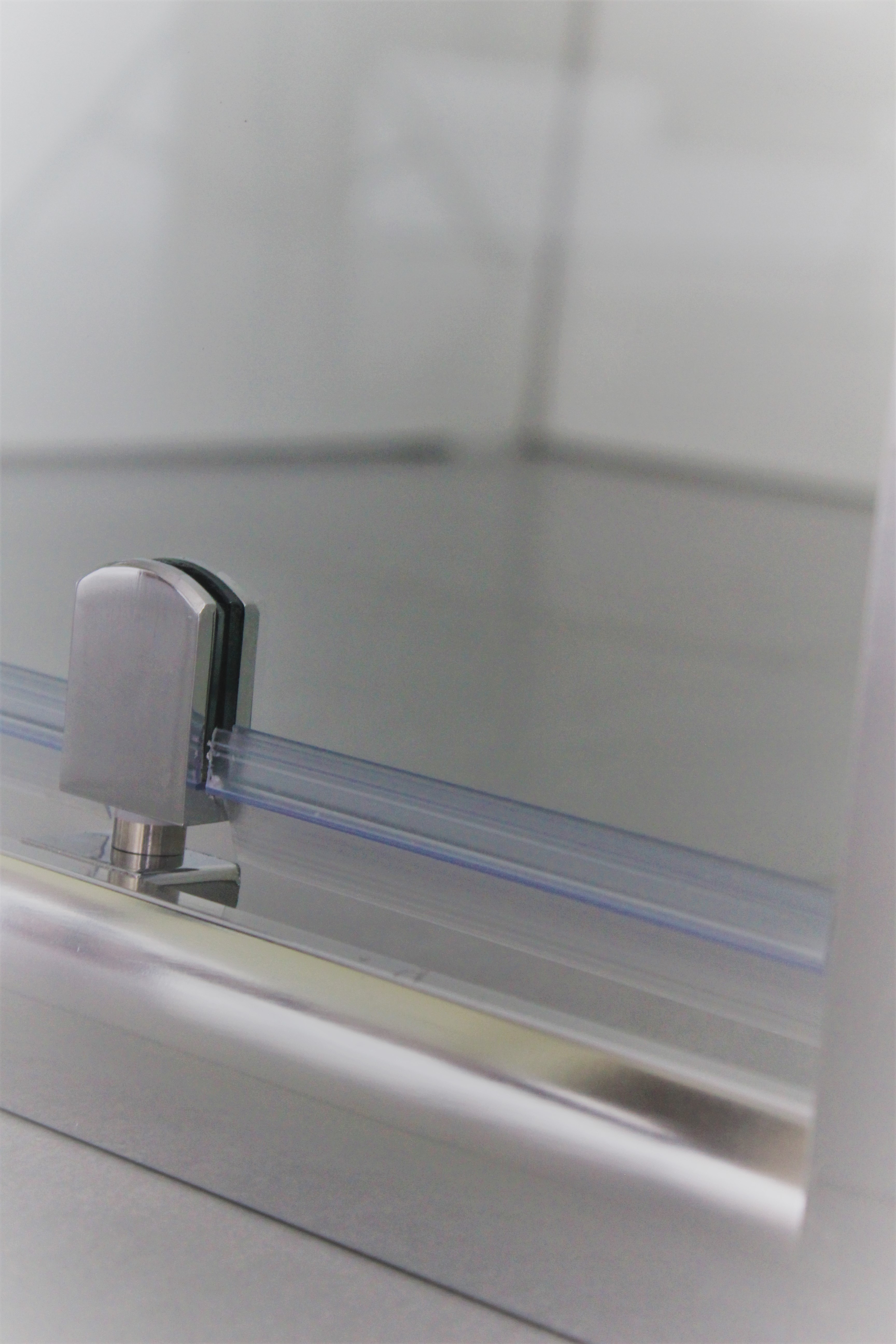 - Jako madlo slouží hliníkový profil, který je na celou výšku dveřního skla