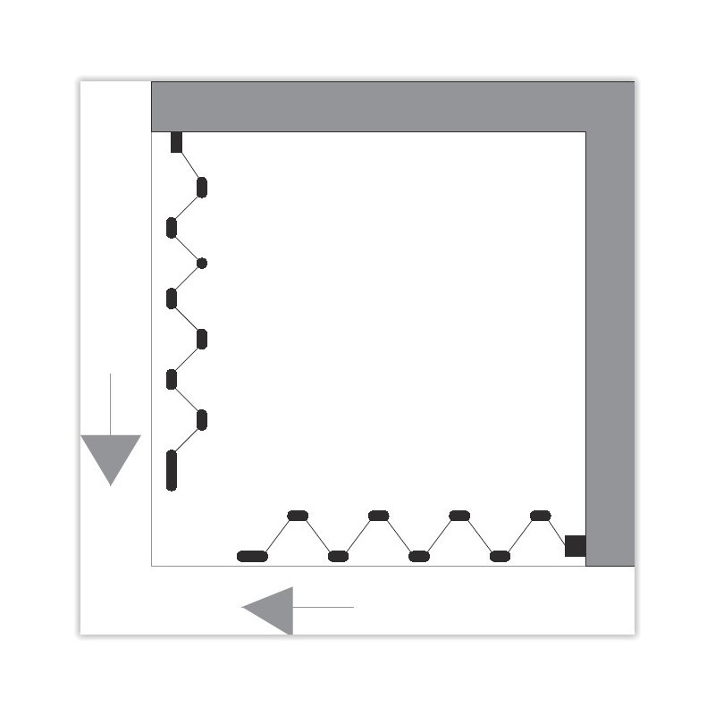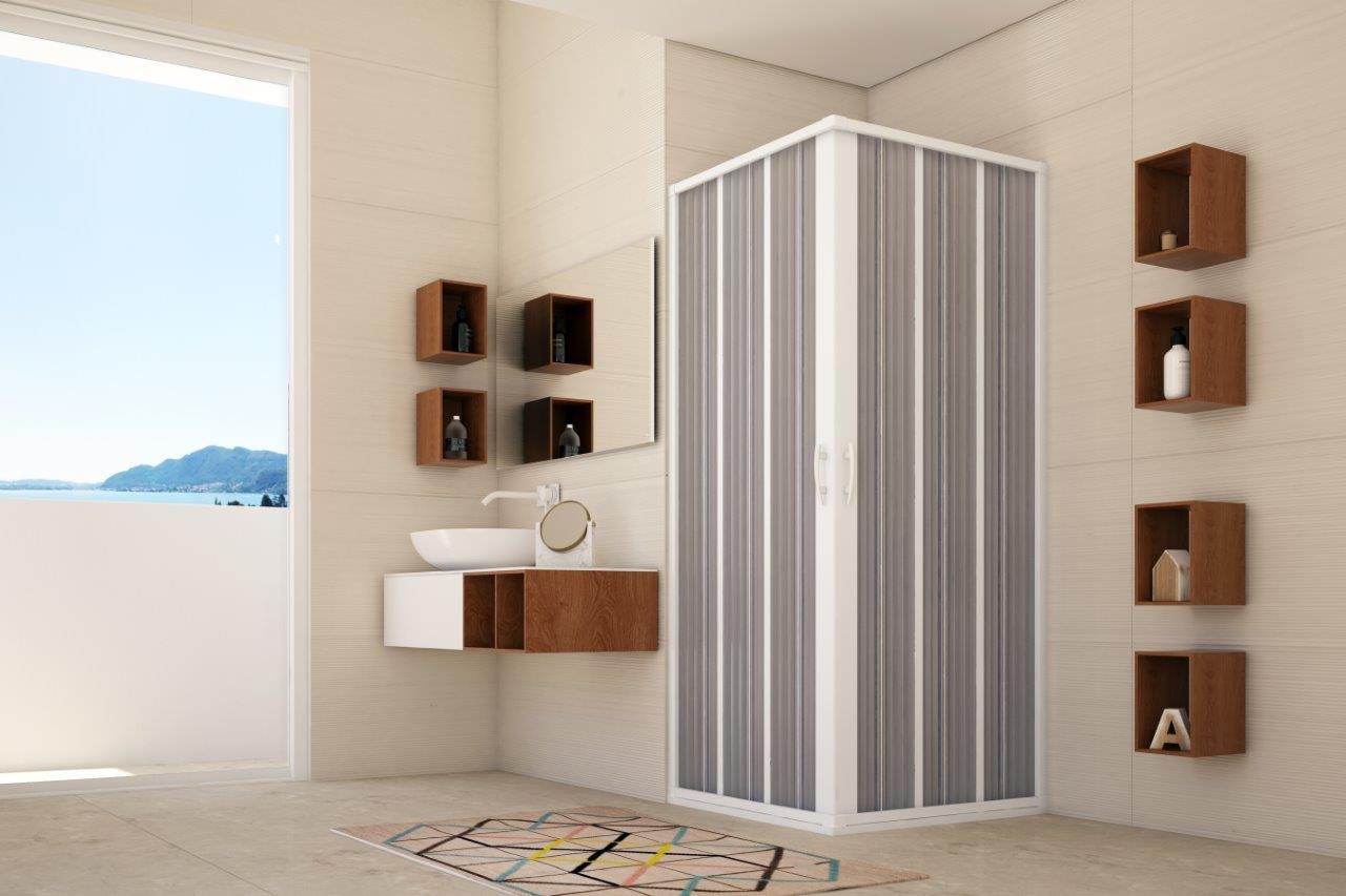 • čtvercová zástěna se zavíráním do rohu (středu)