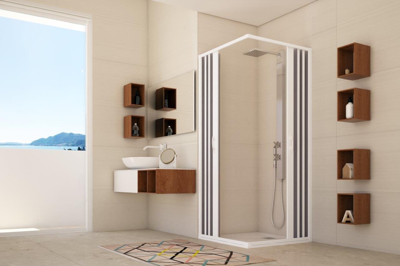 • čtvercová zástěna se zavíráním do rohu (středu)