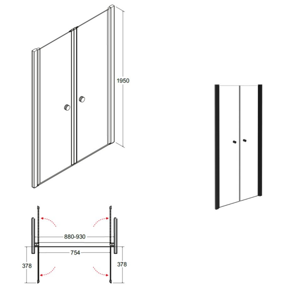 Přednosti a rozměry sprchových dveří SINCO DUE BLACK: