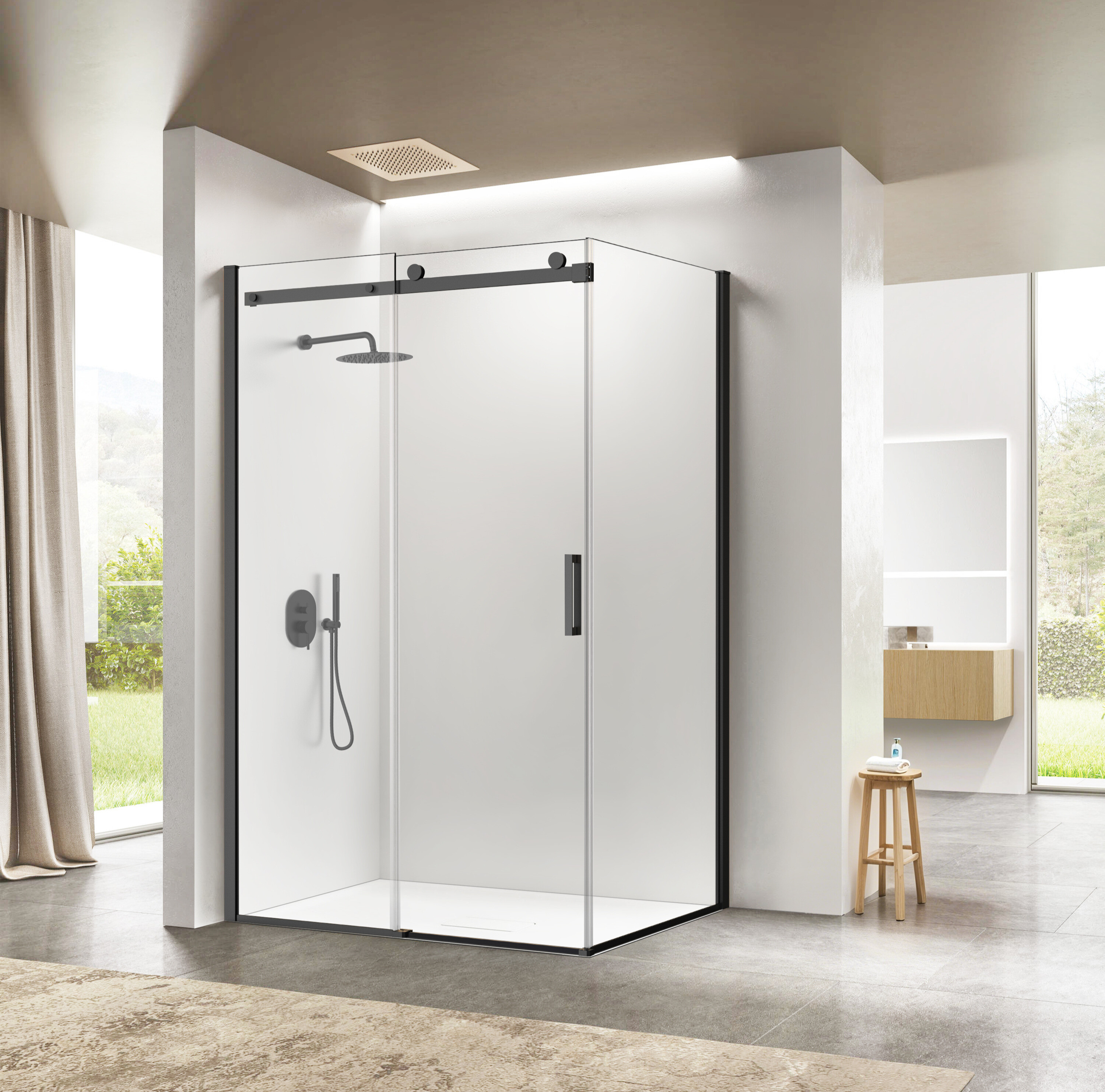 Dveře lze kombinovat s pevnou stěnou PANEL BELVER BLACK a vytvořit tak praktický obdélníkový sprchový kout.