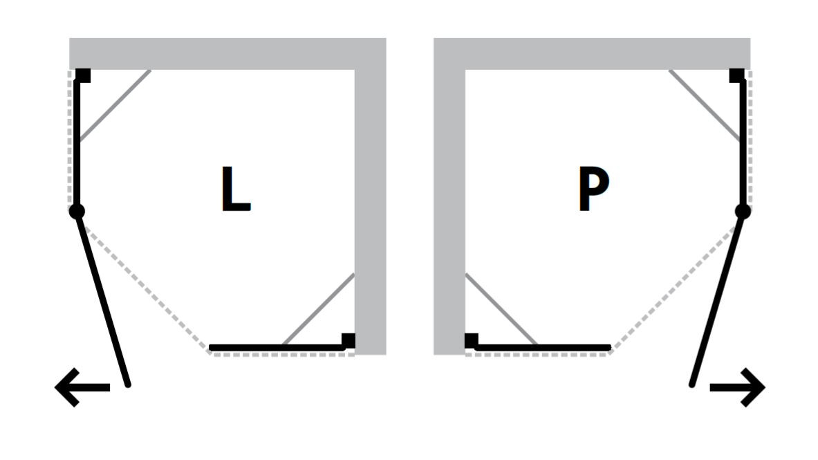 Zástěna se dodává v pravém nebo levém provedení.