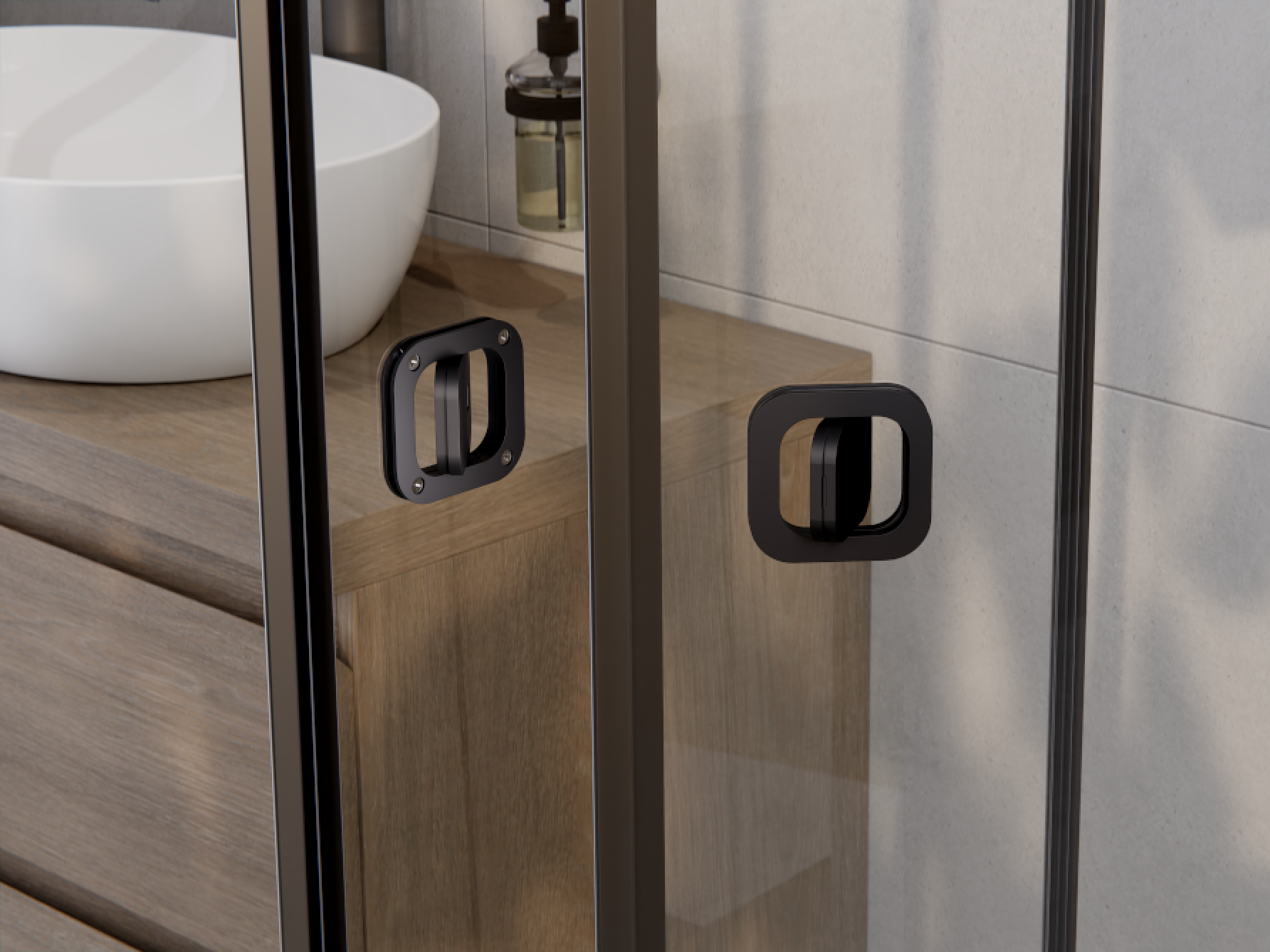 - Kovové panty u dveřních skel s přízdvihem v černé barvě