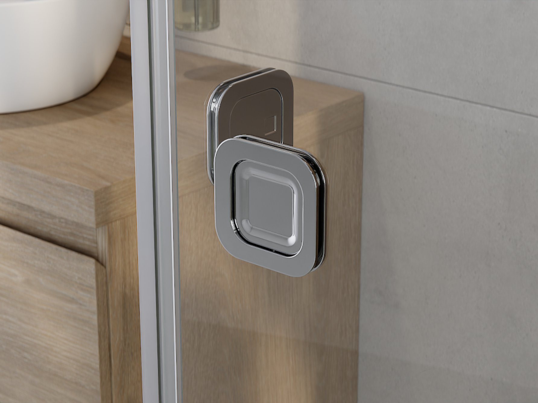 Čtvercový celoskleněný sprchový kout EXO-H CHROM vyniká vysoce kvalitním zpracováním a spolehlivou funkčností všech součástí a materiálů. Kout se skládá ze dvou protilehlých zalamovacích dveří, které se otevírají do prostoru. Spodní hrana dveřní skla je opatřena okapničkou, díky níž voda ze skla při otevření nezteče do prostoru koupelny, ale do vnitřního prostoru koutu.