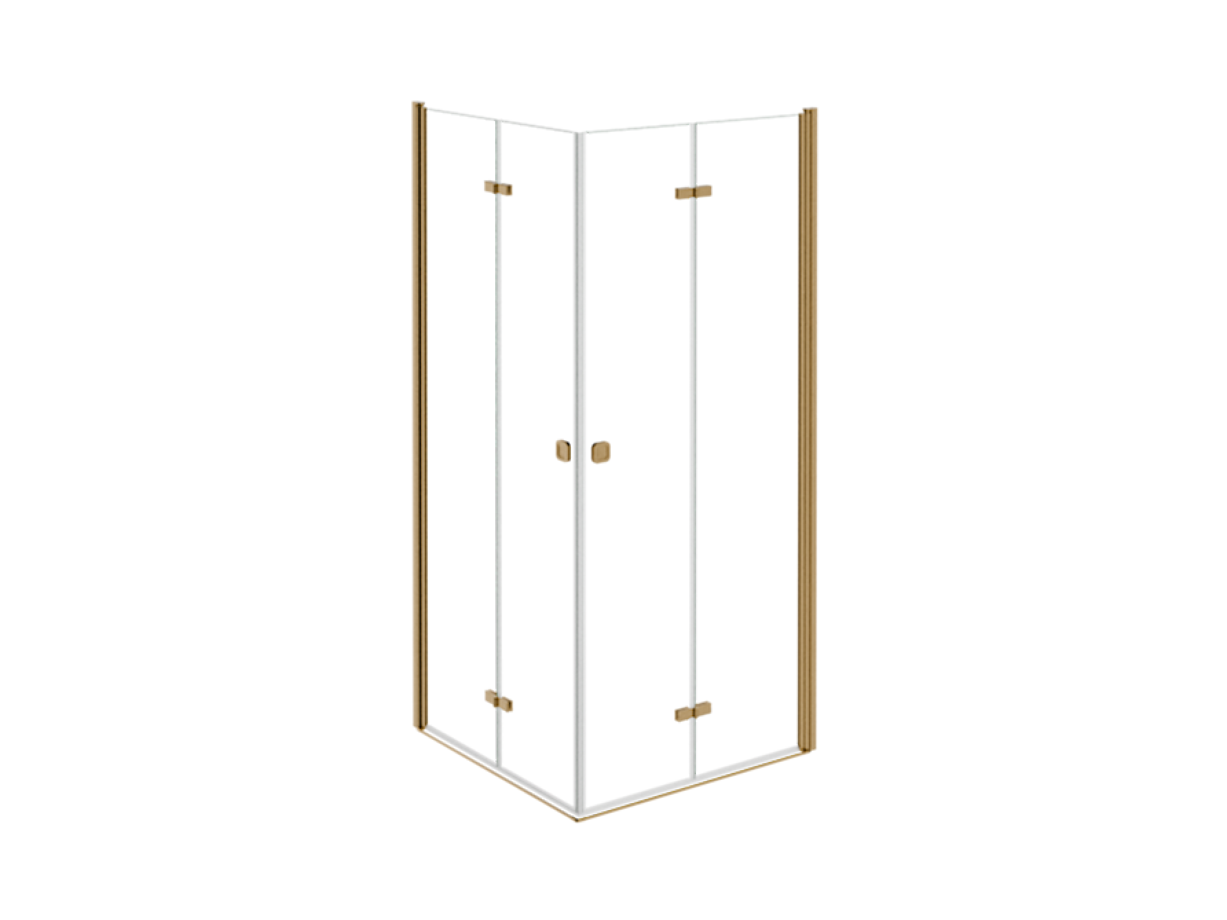 Čtvercový celoskleněný sprchový kout EXO-H GOLD vyniká vysoce kvalitním zpracováním a spolehlivou funkčností všech součástí a materiálů. Kout se skládá ze dvou protilehlých zalamovacích dveří, které se otevírají do prostoru. Spodní hrana dveřní skla je opatřena okapničkou, díky níž voda ze skla při otevření nezteče do prostoru koupelny, ale do vnitřního prostoru koutu.