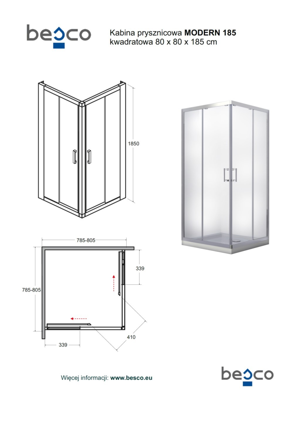 - Modern 80x80x190 cm: 78,5 - 80,5 cm