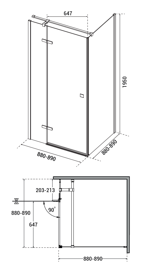 - Rozměr: 90 x90 x 195 cm (montážní rozměr 88 - 89 cm)