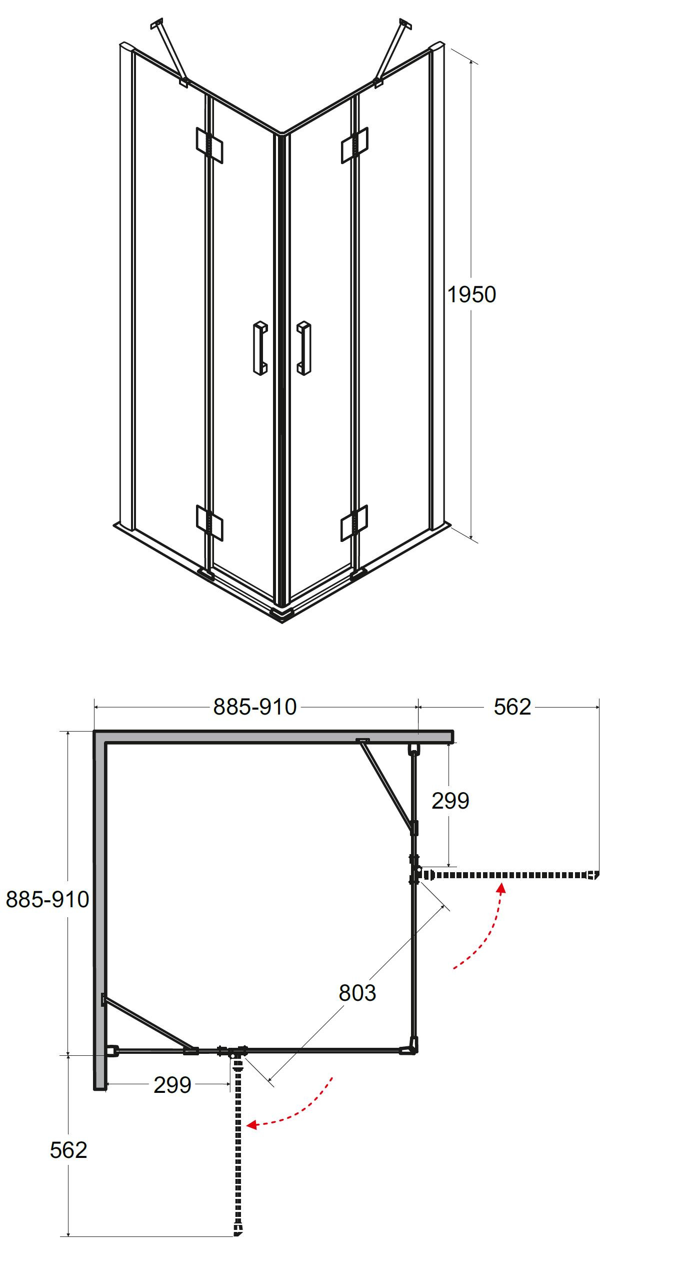- 90 × 90 × 195 cm (montážní rozměr 88,5 - 91 cm)