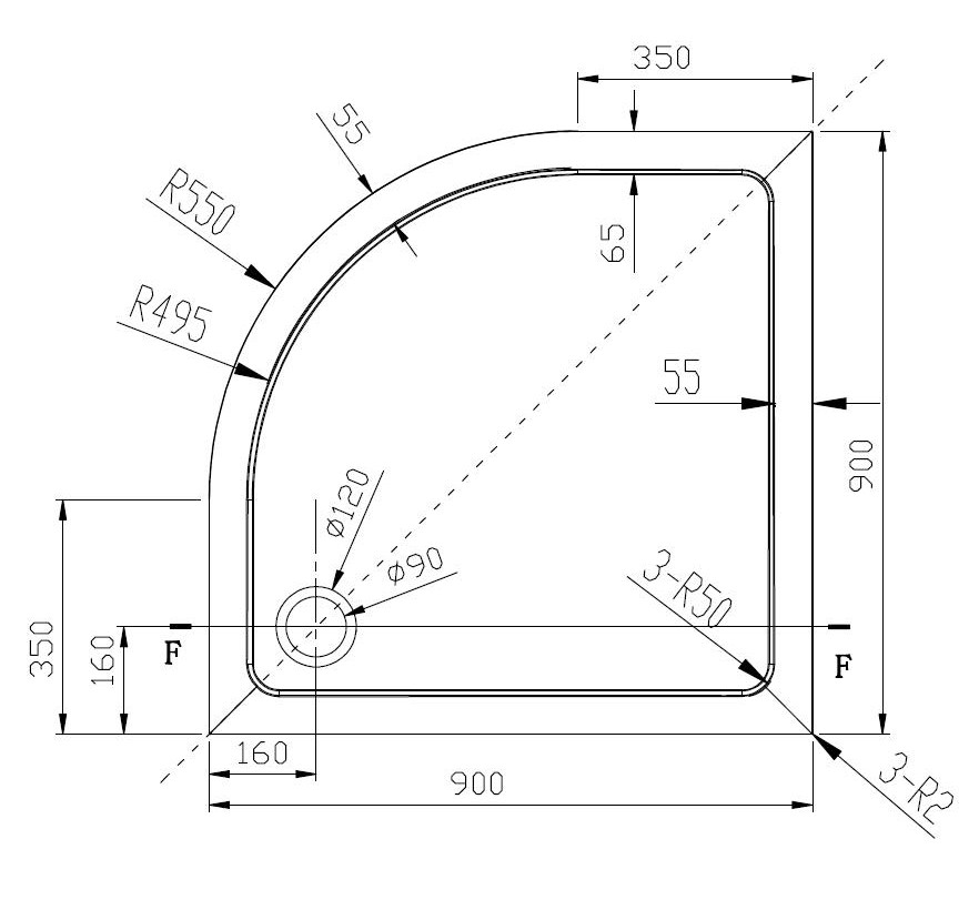 • Čtvrtkruhový sprchový kout