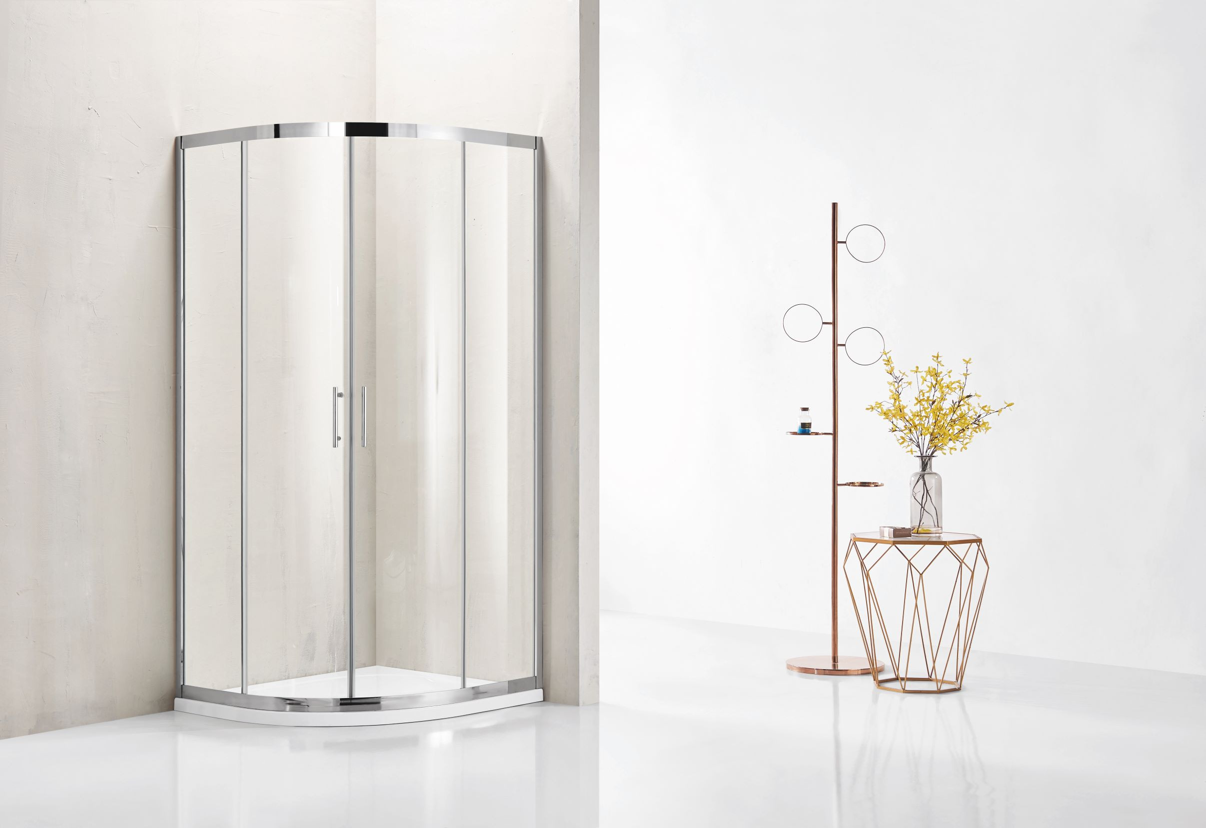 - Čtvrtkruhový sprchový kout