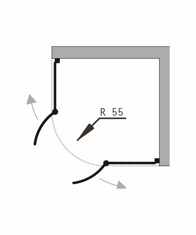 otevírají do prostoru. Spodní hrana dveřní skla je opatřena okapničkou, díky níž voda ze skla při otevření nezteče do prostoru koupelny, ale do vnitřního prostoru koutu. Kout je možné objednat ve dvou rozměrech 80 × 80 × 195 cm nebo 90 × 90 × 195 cm.