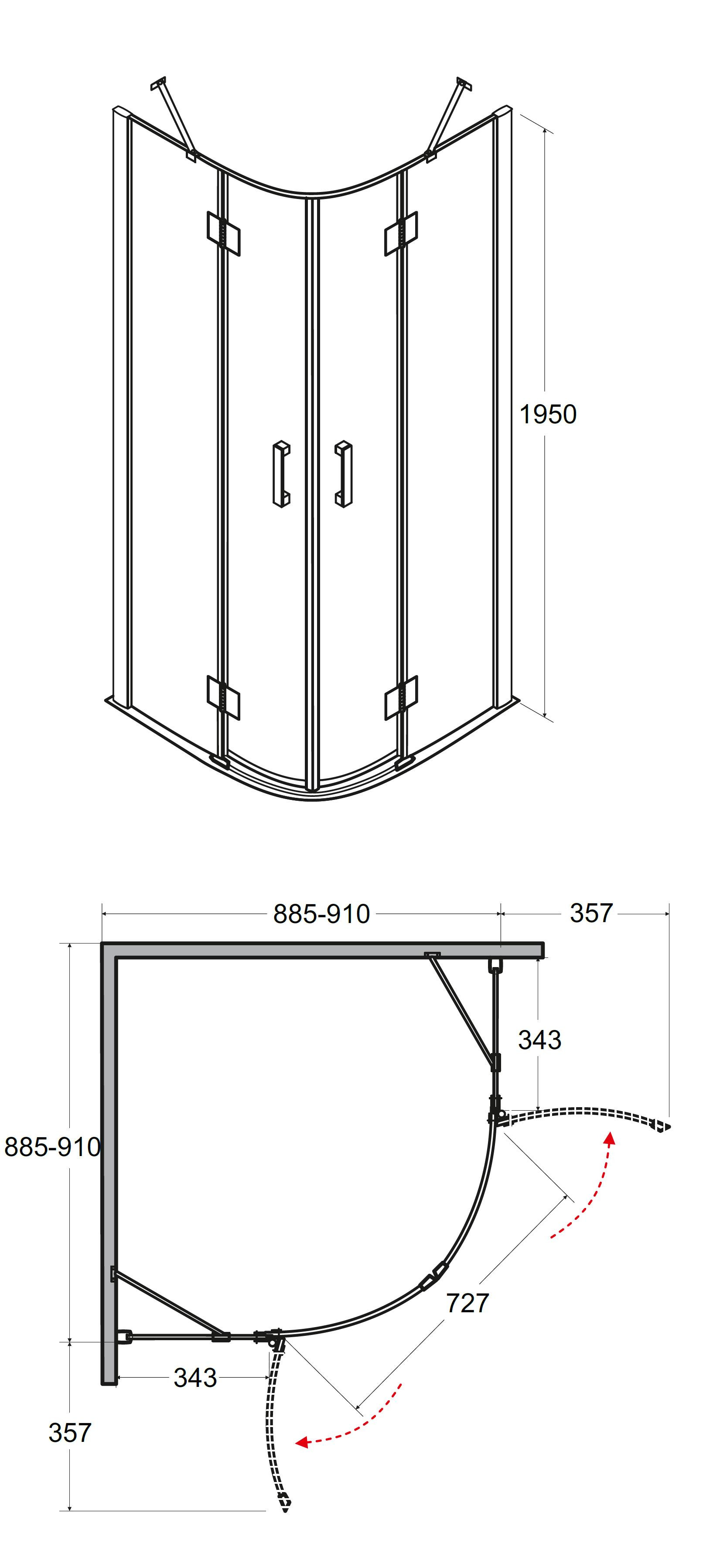 - 90 × 90 × 195 cm (montážní rozměr 88,5 - 91 cm)