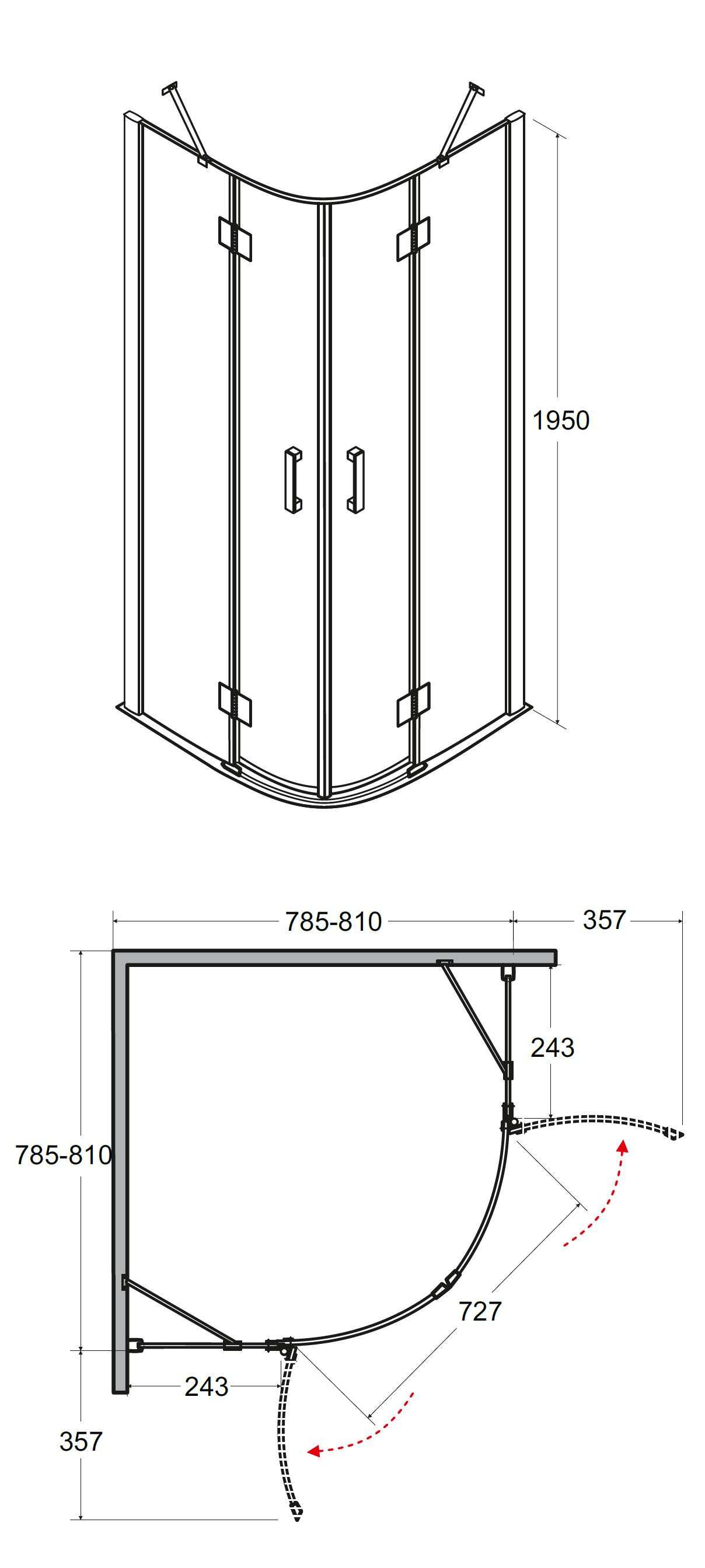 - 80 × 80 × 195 cm (montážní rozměr 78,5 - 81 cm)
