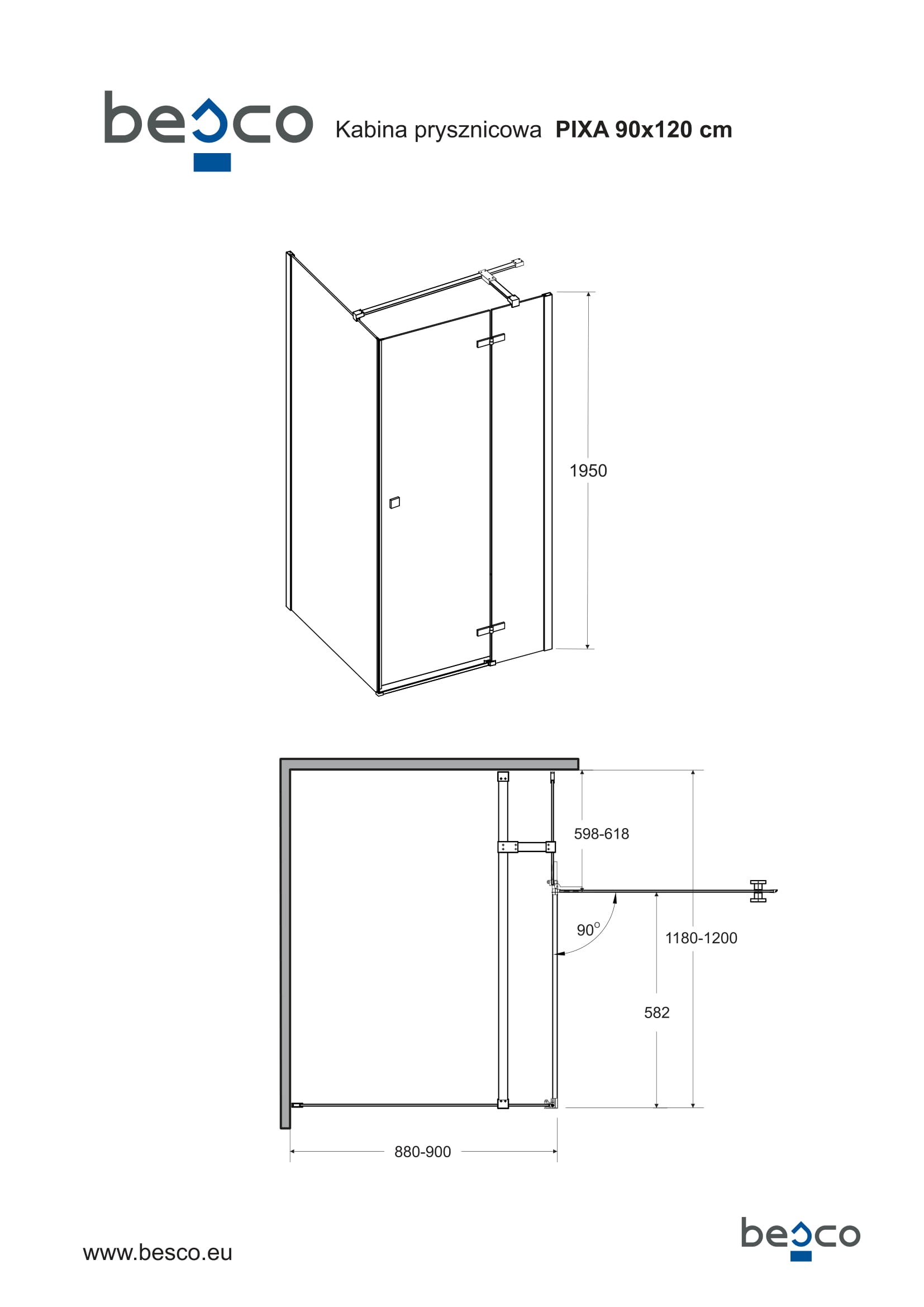 - 120 × 90 × 195 cm (montážní rozměr 118 - 119 × 88 - 89 cm)
