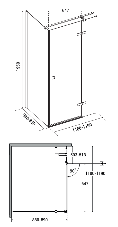 - 120 × 90 × 195 cm (montážní rozměr 118 - 119 × 88 - 89 cm)