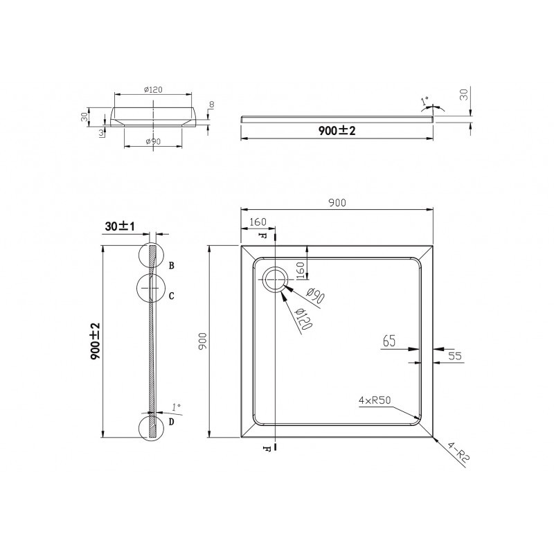 - 90 × 90 × 3 cm