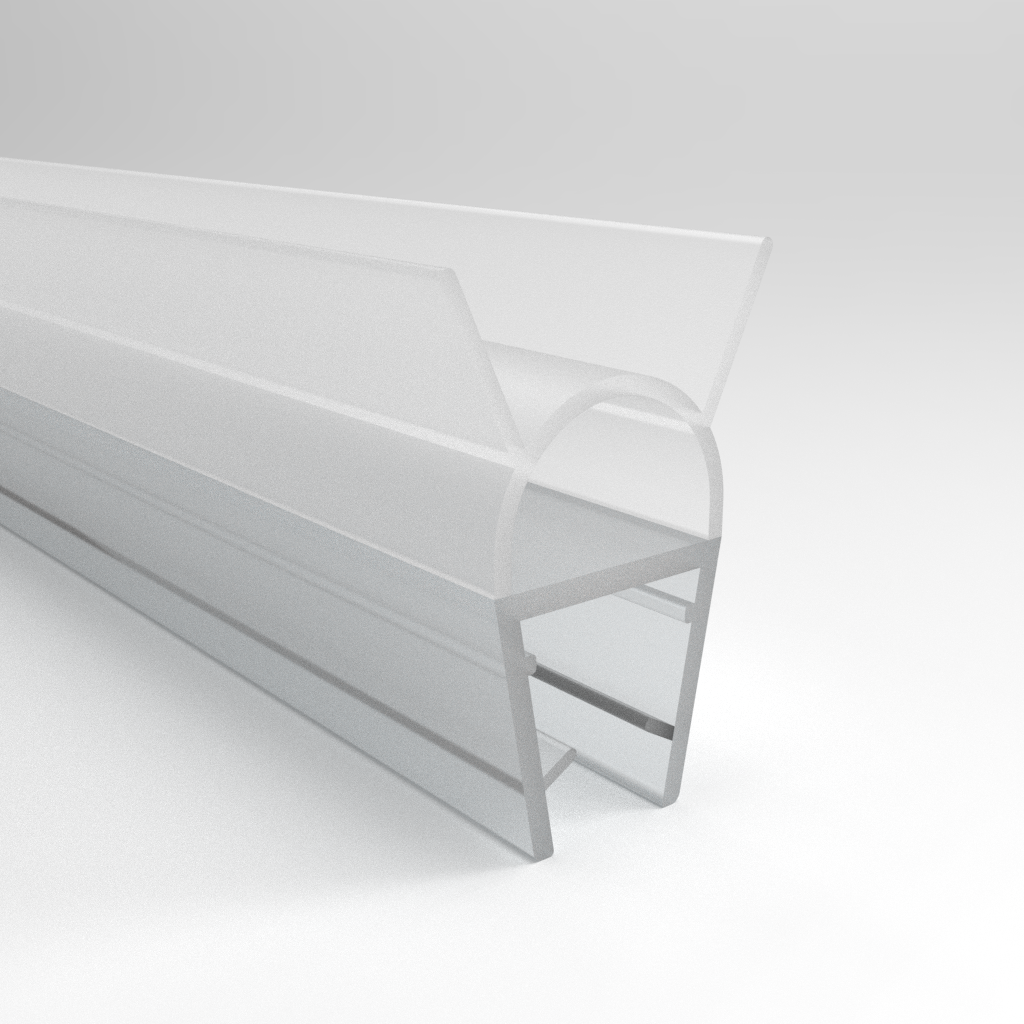 Tento silikonový těsnící profil slouží k utěsnění spoje mezi pevným sklem s tloušťkou 6-8mm a obkladem stěny, případně dveřním sklem a nástěnným profilem. Těsnící lištu lze osadit i na sklo s menší tloušťkou, jen před vlastním osazením je třeba do drážky lišty aplikovat transparentní sanitární silikon, kterým se lišta přilepí na spodní hranu skla.