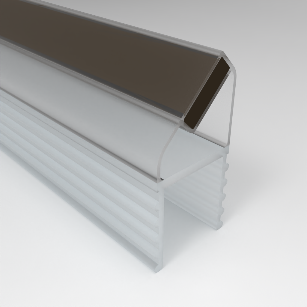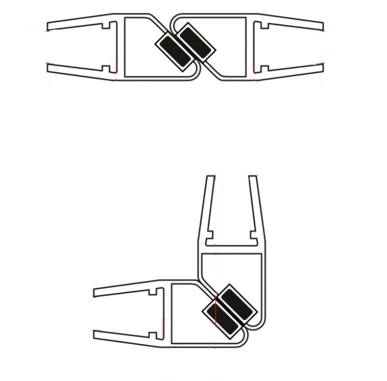 Tento silikonový těsnící profil řeší zavírání dveří sprchového koutu. ze použít pro zástěny s dovíráním skel 180° i 90°. Nutno objednat oba kusy jako pár, kvůli opačné polaritě magnetů. Těsnící lištu lze osadit i na sklo s menší tloušťkou, jen před vlastním osazením je třeba do drážky lišty aplikovat transparentní sanitární silikon, kterým se lišta přilepí na spodní hranu skla.