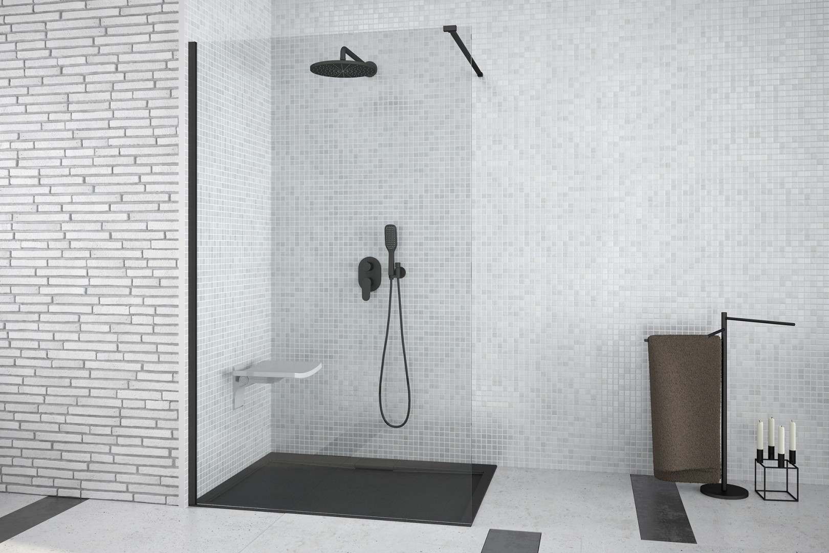 Walk-in sprchový kout AVEO BLACK nabízí revoluční řešení bez použití pohyblivých dveří, rohových vzpěr a pantů. Ve spojení s moderními odtokovými kanálky vznikne zcela bezbariérový prostor pro sprchování. Zástěny jsou vyrobeny z bezpečnostního skla.