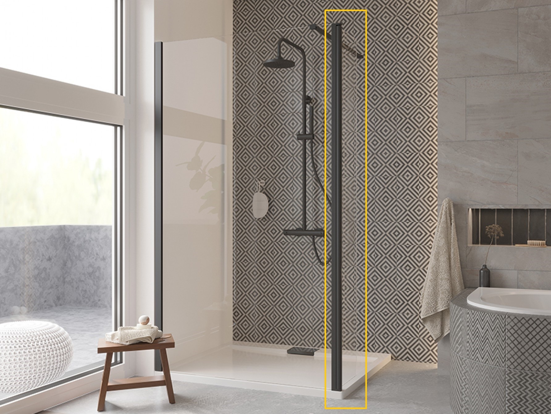 Neslouží jako samostatný sprchový kout nebo zástěna, je určena pouze pro sprchovou zástěny Walk-in ECO-N BLACK.
