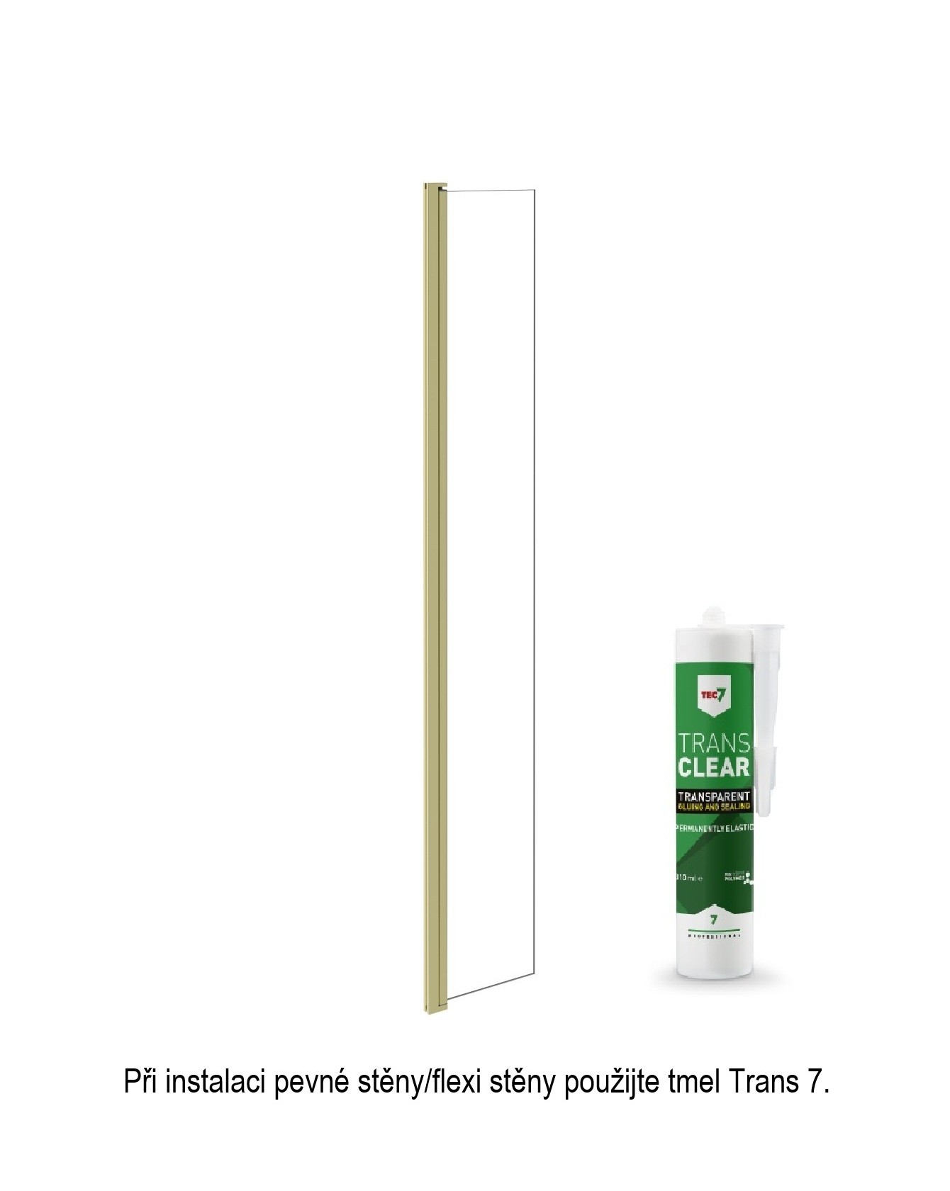 Při instalaci pevné stěny/flexi stěny použijte tmel Trans 7.