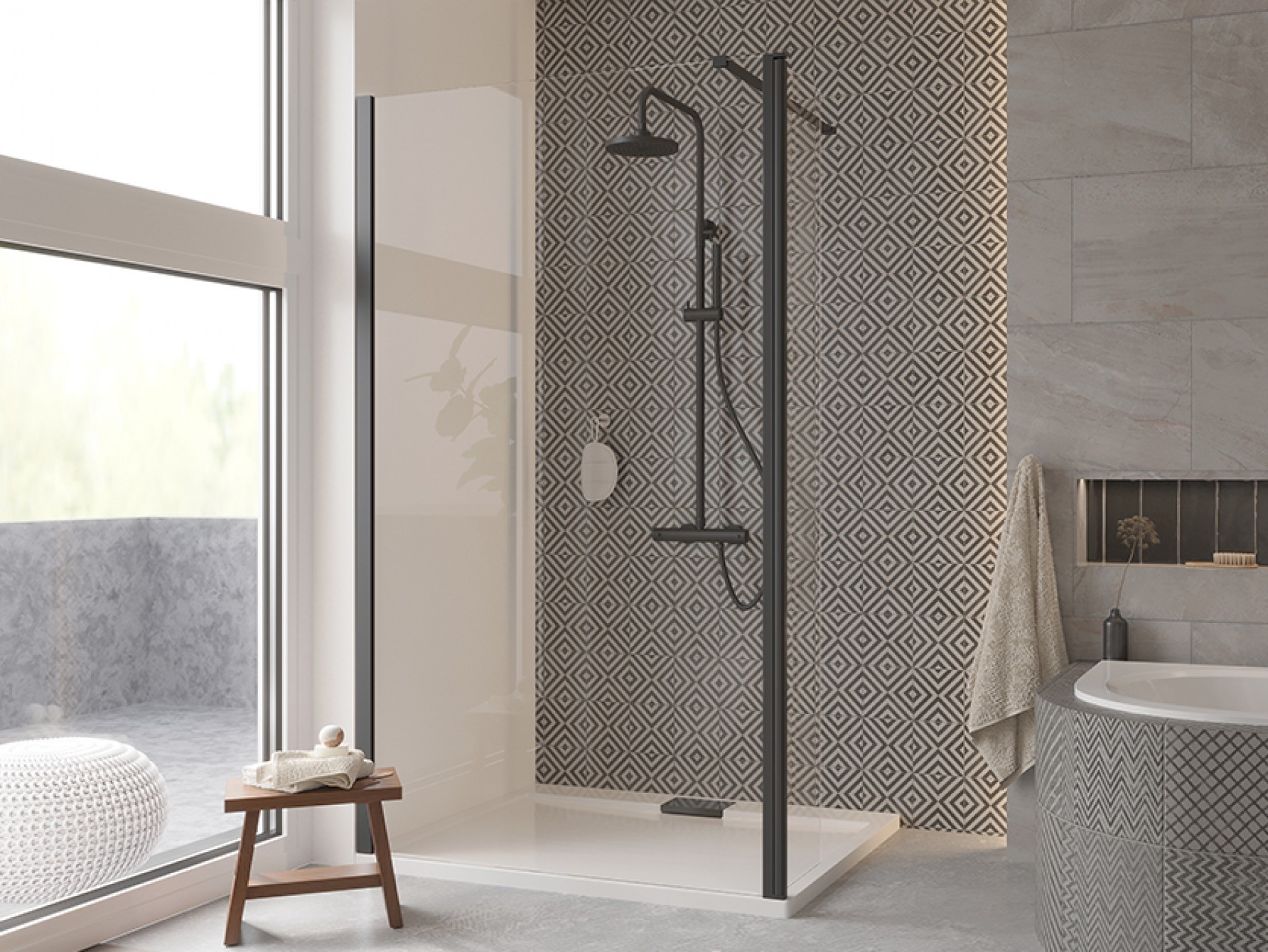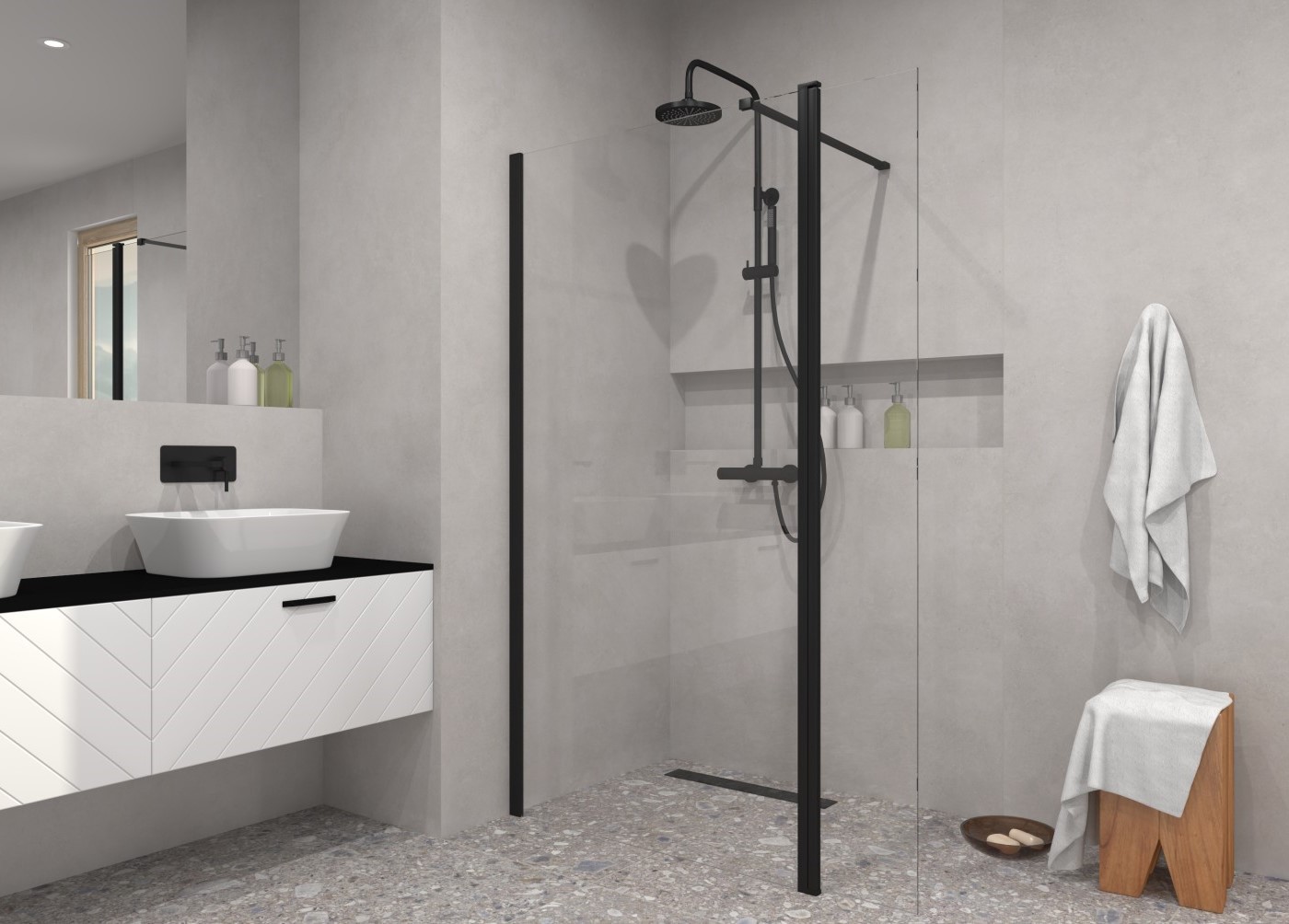 Walk-in sprchový kout ECO-N BLACK nabízí revoluční řešení bez použití pohyblivých dveří, rohových vzpěr a pantů. Ve spojení s moderními odtokovými kanálky vznikne zcela bezbar ...Více informací
