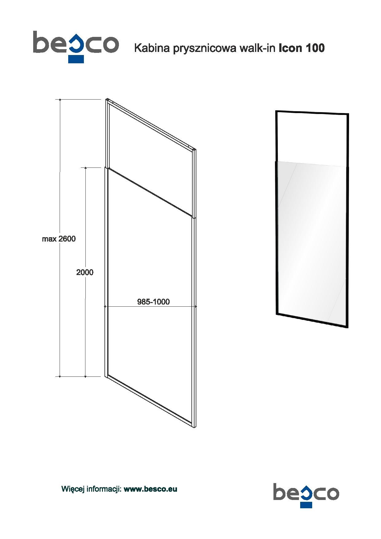 Rám pevné stěny má nastavitelnou výšku 200 až 260 cm. Bez nutnosti montáže rozpěrné tyče. Díky teleskopickému výsuvu horní hrany, je možné přichytit zástěnu do stropu.