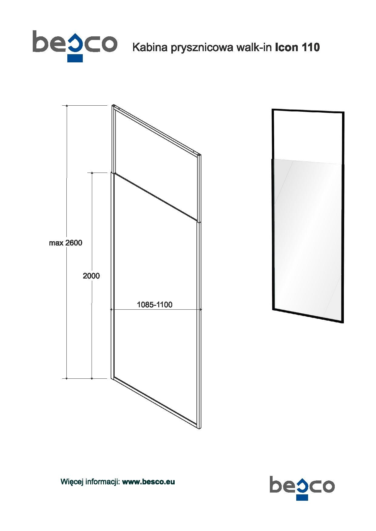 - 110 × 200 - 260 (výška) cm, montážní rozměr 108,5 - 110 cm