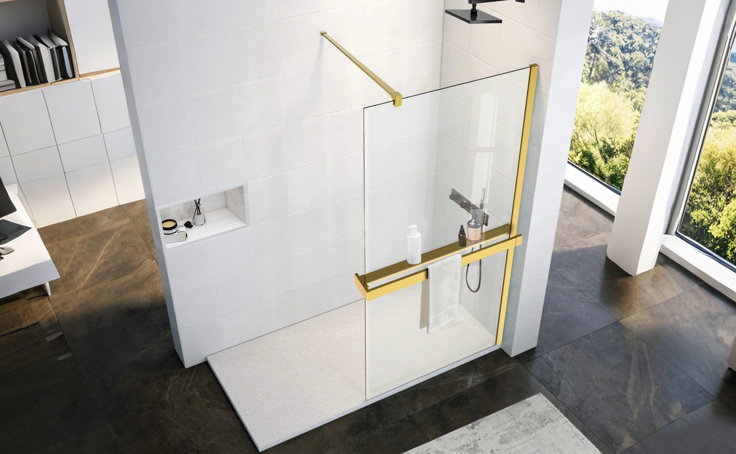 Walk-in sprchová zástěna LAGOS NEW s rámem a rozpěrnou tyčí ve čtyřech barvách (chrom, černá, zlatá a grafitová), nabízí jednoduché a přitom praktické řešení bez použití pohyblivých dveří, ale s maximálním vstupem. Dá se osadit jak na sprchové vaničky, tak i přímo na podlahu.