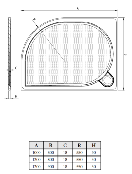 7 290,00 CZKLAKA - vanička litý mramor, asymetrický čtvrtkruh 1200x900X30 mm, pravé provedení, R550, bez nožiček