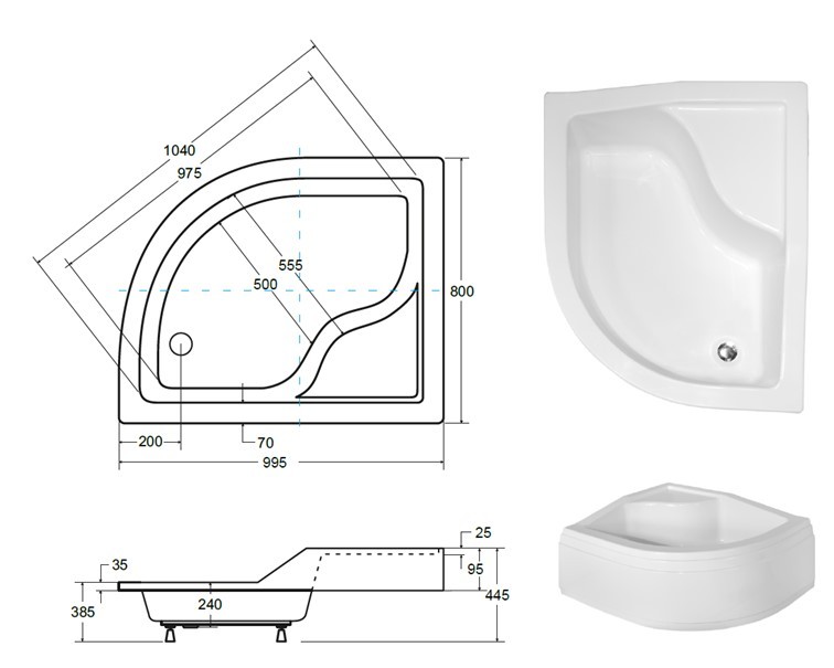 - Tvar - asymetrický čtvrtkruh, R550