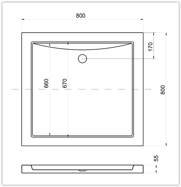 čtverec 800 × 800 × 55 mm