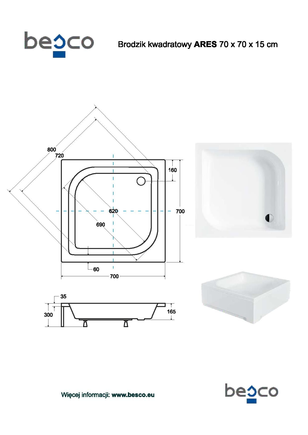 2 989,99 CZKARES - hluboká čtvercová sprchová vanička akrylátová 70x70x16,5cm, včetně nožiček