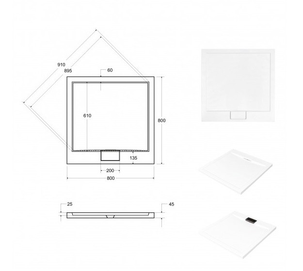 čtverec 800 x 800 x 45 mm