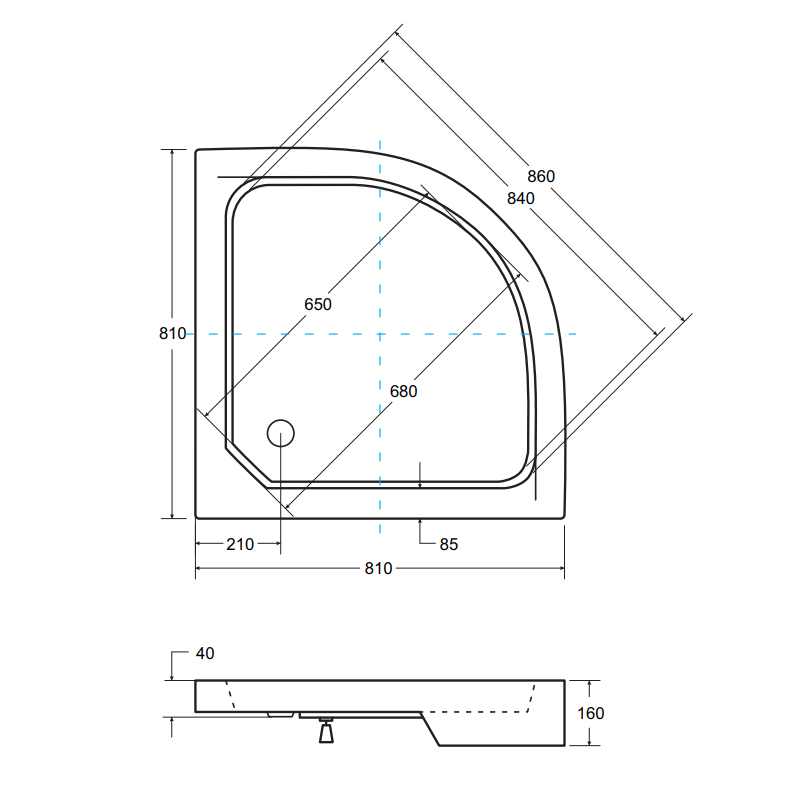 3 890,00 CZKALEX - čtvrtkruhová vanička akrylátová 81x81x16 cm, R550, včetně nožiček, STONE EFFECT, černá barva