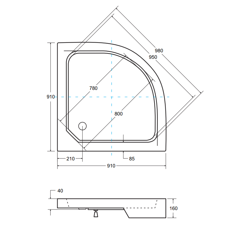 3 990,00 CZKALEX - čtvrtkruhová vanička akrylátová 91x91x16 cm, R550, včetně nožiček, STONE EFFECT, černá barva