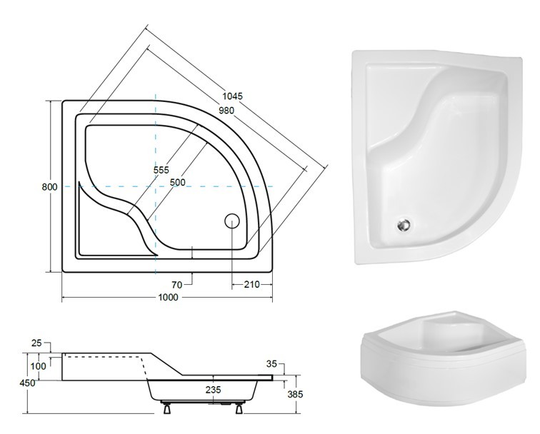 4 690,00 CZKMAXI, hluboká asymetrická sprchová vanička 100x80x24 cm, R550, pravé provedení