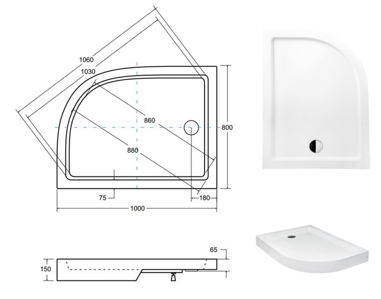 4 890,00 CZKSATURN - asymetrická sprchová vanička akrylátová 100x80x15 cm, R550, levá, včetně nožiček