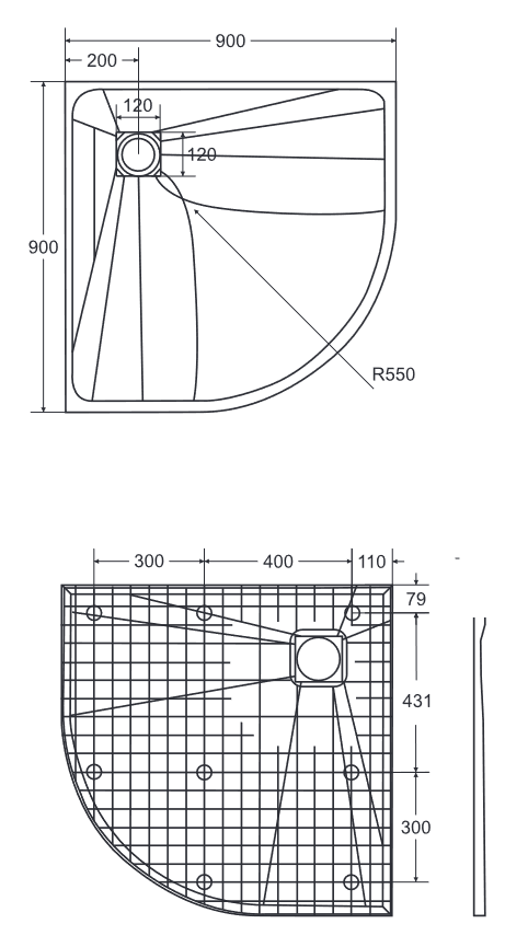 7 290,00 CZKVEXO BLACK ČTVRTKRUH, SMC vanička, 90x90x3,2 cm, R550, černá barva, bez nožiček, včetně sifonu